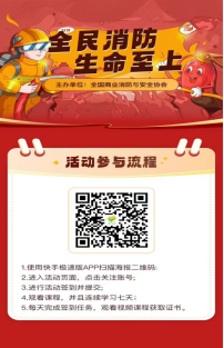 为深入贯彻《中华人民共和国消防法》及相关法律法规精神,积极响应国务院安委会办公室、应急管理部关于推进安全宣传“五进”工作的号召,进一步提升全民消防安全素质,增强全民消防安全防范意识,全国商业消防与安全协会联合快手平台共同开展《全民消防守护生命—2024全国公益行》消防宣传月消防安全科普特别活动。现将我校参加活动相关事宜通知如下: