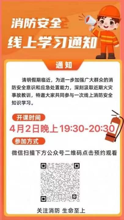 望各单位积极组织教职员工参与此次线上公开课,学习消防安全知识,提高自防自救能力。让我们携手努力,共筑清明节期间的消防安全防线。