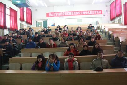 2017年1月4日上午9点,在我校第二教学楼101教室举行消防值班员工作岗位上岗仪式和岗前培训。首先安全工作处副处长陈徽,从消防值班员岗位的重要性和工作责任等几方面提出具体的工作要求并对消防值班员在今后的工作中寄予厚望,而后北戴河金鼎保安服务有限公司副大队长李海洋提出具体工作要求,最后全体消防值班员观看了消防监督检查示范片和消防警示片。