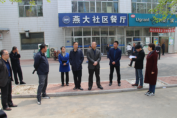会后,谢延安带队对西校区学生宿舍、校园环境、燕大小区等区域的安全、卫生、秩序情况进行了现场检查,对发现的安全隐患、私耕乱种、卫生死角、自行车乱停乱放等问题要求相关部门提出具体方案并限期整改到位。