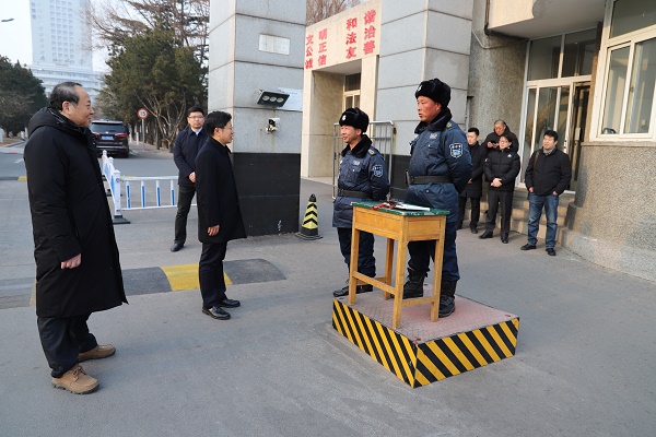 在世纪楼消防控制室和学校正门保安亭,赵险峰与大家亲切交流,认真了解值班安排情况,仔细询问了假期学校的安全保障工作。赵险峰握住一位保安大哥的手,深情地说:“2020年是建校溯源百周年、独立办学一甲子,我代表学校党委和行政来看望大家,对大家为学校安全工作所做的贡献表示感谢!对大家春节期间坚守岗位表示敬意!”赵险峰勉励在场工作人员继续发扬甘于奉献、爱岗敬业的优良传统,持续做好校庆年的安全保卫工作。