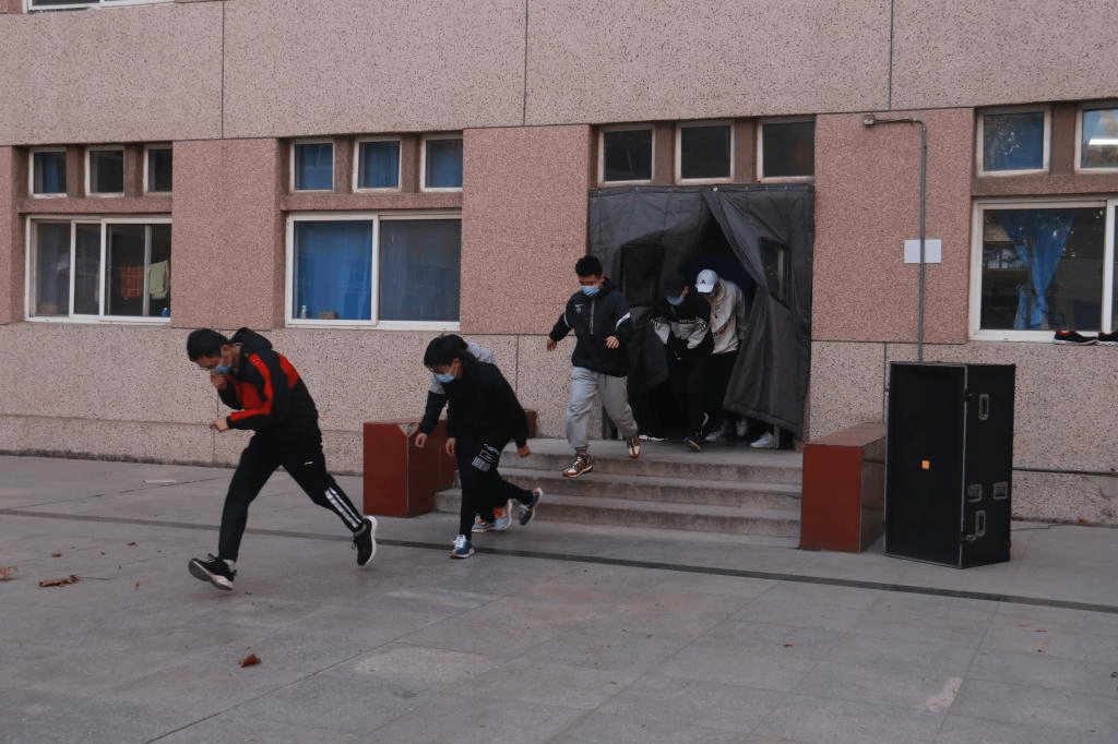 消防安全讲座后,在我校东校区第一学生公寓开展了消防疏散救援应急演练,共计1500余人参加和观摩了此次演练。演练以学生寝室电线短路“失火”为背景,发现火情后,由后勤服务中心2人和辖区校卫队3人组成第一灭火战斗力量扑救初起火,引导学生有序疏散,学校总值班室接到“火情”报告后立即启动应急预案,学校微型消防站专职消防值班员做为第二灭火战斗力量在三分钟内到达失火现场,开展人员搜救和火场灭火。秦皇岛市消防救援支队接到“火警”,调派消防救援车辆到达现场,消防员侦查“火情”后,采取有效措施及时将火扑灭。