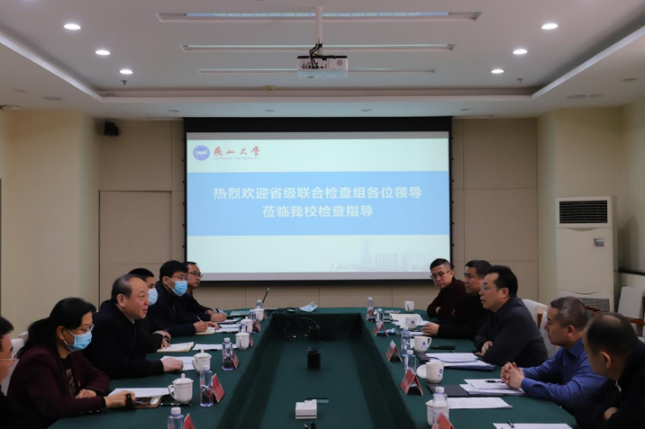 检查组一行在世纪楼2102会议室听取了我校关于校园安全日常管理、学校安防体系建设、师生安全教育、校园常态化疫情防控等相关情况的汇报。