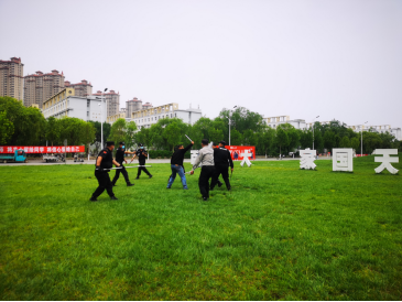 演练活动首先进行反恐防暴器材技能培训,安保队长对警棍、橡胶长棍、盾牌、叉棍等警械使用做了示范说明,并对暴恐突发事件的应对处置方法进行了讲解演示。