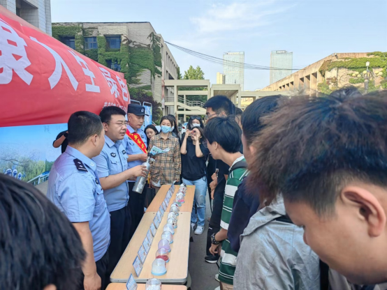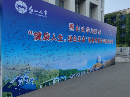 为全面开展禁毒宣传月宣传教育活动,进一步加强学校禁毒宣传教育工作力度,大力提升广大师生识毒、防毒、拒毒意识。在第36个“国际禁毒日”来临之际, 6月14日下午,学校安全工作处联合海港区禁毒办、海港分局、燕园派出所在乌鸦传媒东校区老图书馆开展了“健康人生,绿色无毒”毒品预防普法宣传活动。