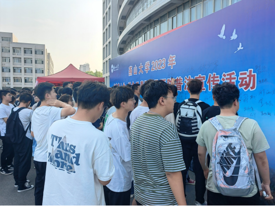 活动现场,工作人员通过展示仿真毒品、发放禁毒宣传资料,讲解各种毒品危害、普及毒品的相关知识及法律法规。揭示了滥用毒品、新精神活性物质等对个人、家庭和社会的严重危害。通过防范知识宣讲、各类毒品样式展示以及实际案例警示教育,促进师生提升安全防范意识和法治观念。有近千名师生参加了此次活动,并纷纷在主题宣传展板上签字,表明拒绝毒品诱惑,坚决筑牢防毒拒毒的决心。