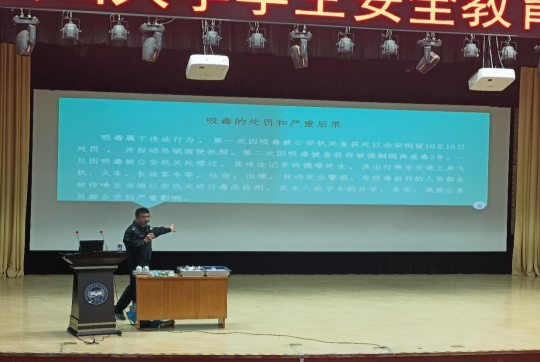 首先,秦皇岛市公安局海港分局禁毒大队警官潘月围绕“防范青少年药物滥用”这一主题开始了今天的讲座。潘月警官从结合实际,专业知识向同学们详细介绍毒品的种类、危害以及如何防范毒品等知识,让同学们深刻认识到毒品对个人、家庭和社会的严重危害,及时为我们敲响警钟,增强同学们对毒品的警惕性,降低接触毒品的风险,筑牢校园禁毒安全防线。同时,为让学生直观地认识各种毒品的形态、特征,增强对毒品的辨识度,通过展示仿真毒品模型、讲解毒品类型等形式提醒学生要注意识别“披着食品外衣的毒品”,不要陷入“美味陷阱”中。