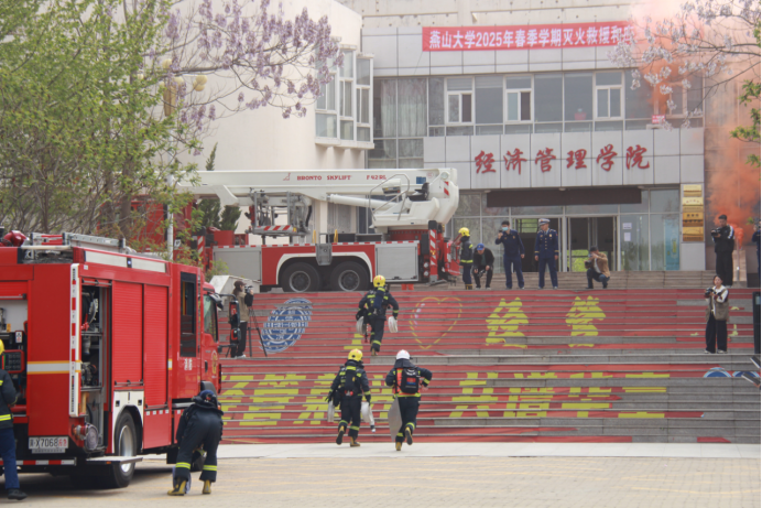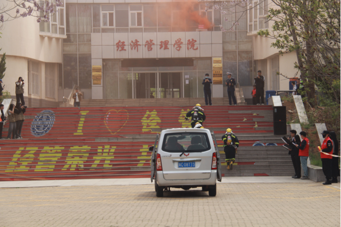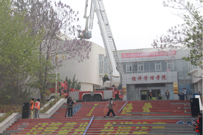 此次演练前安全工作处和经济管理学院进行了充分论证准备和精心安排部署,演练过程中坚持实战导向,模拟教学楼微波炉电线故障失火、有人员被困的火情,设置紧急疏散逃生、微型消防站扑救初期火灾、消防救援人员灭火并高空营救被困人员等演练科目。